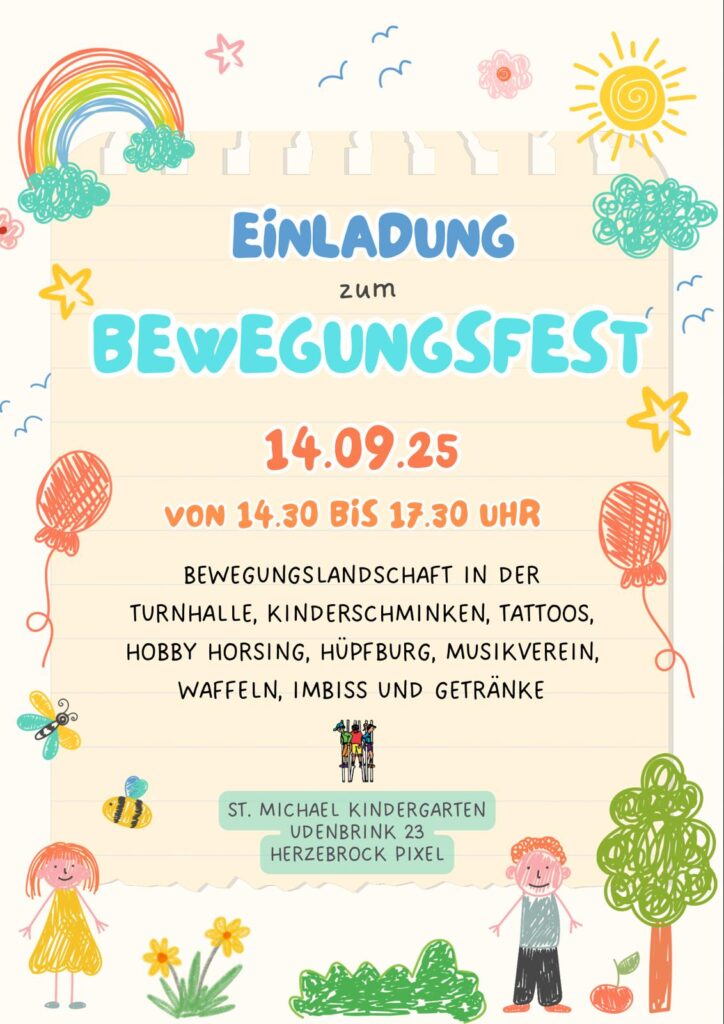 | 14.9.25 | ca. 14:30 | Kita St. Michael, Pixel | Bewegungsfest | |